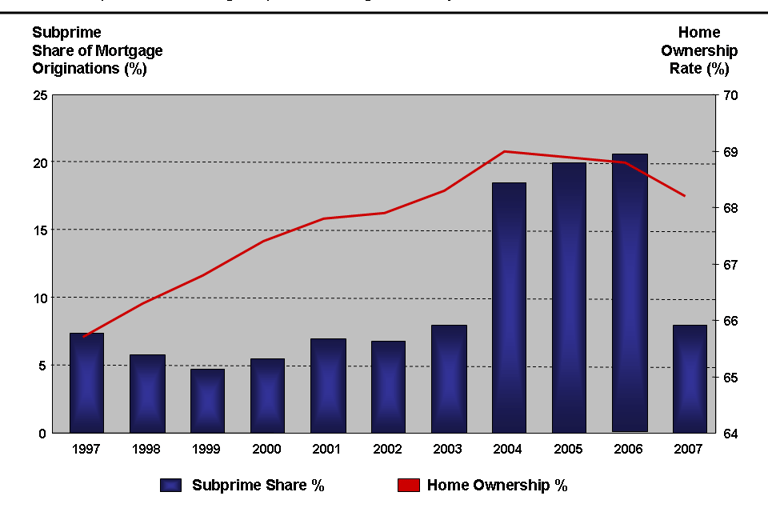 With a view to promote affordable housing, the Clinton Administration enforced the Community Reinvestment Act of 1977, which required banks to lend to low and middle income groups. Regulators forced banks to issue subprime mortgages. Subprime lending is providing loans to people with poor credit history, improper income records, and / or unacceptable loan-valuation ratio. The Bush administration continued the same policy. Good politics is often bad economics. Here, it delivered apparently free lunches, the bill for which was later footed by the whole world.