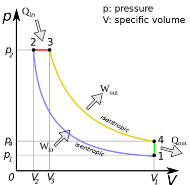 Figure 2. Pressure-Volume Diagram for Otto Cycle used by Petrol or Gasoline Engines