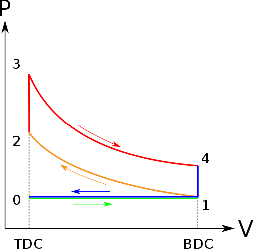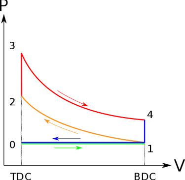 Petrol (gasoline) engines operate on the Otto Cycle as represented by the pressure-volume (PV) diagram in figure 1.